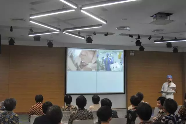 在參觀的最后環(huán)節(jié),市民朋友來到我院9樓大會議室,利用現(xiàn)場實時轉(zhuǎn)播系統(tǒng),觀看種植牙手術(shù)現(xiàn)場直播,讓其全方位的了解我院手術(shù)室內(nèi)的尖端設(shè)備,手術(shù)的安全可靠性等。很多市民對于種植手術(shù)的理解都有一定的誤區(qū),但是通過此次現(xiàn)場直播,能讓市民很好的了解感受到,種植手術(shù)的微創(chuàng)性、無痛舒適性及快速性等特點,可以說,當天拔牙、當天種牙、當天吃飯成為種植牙的一種常態(tài)。